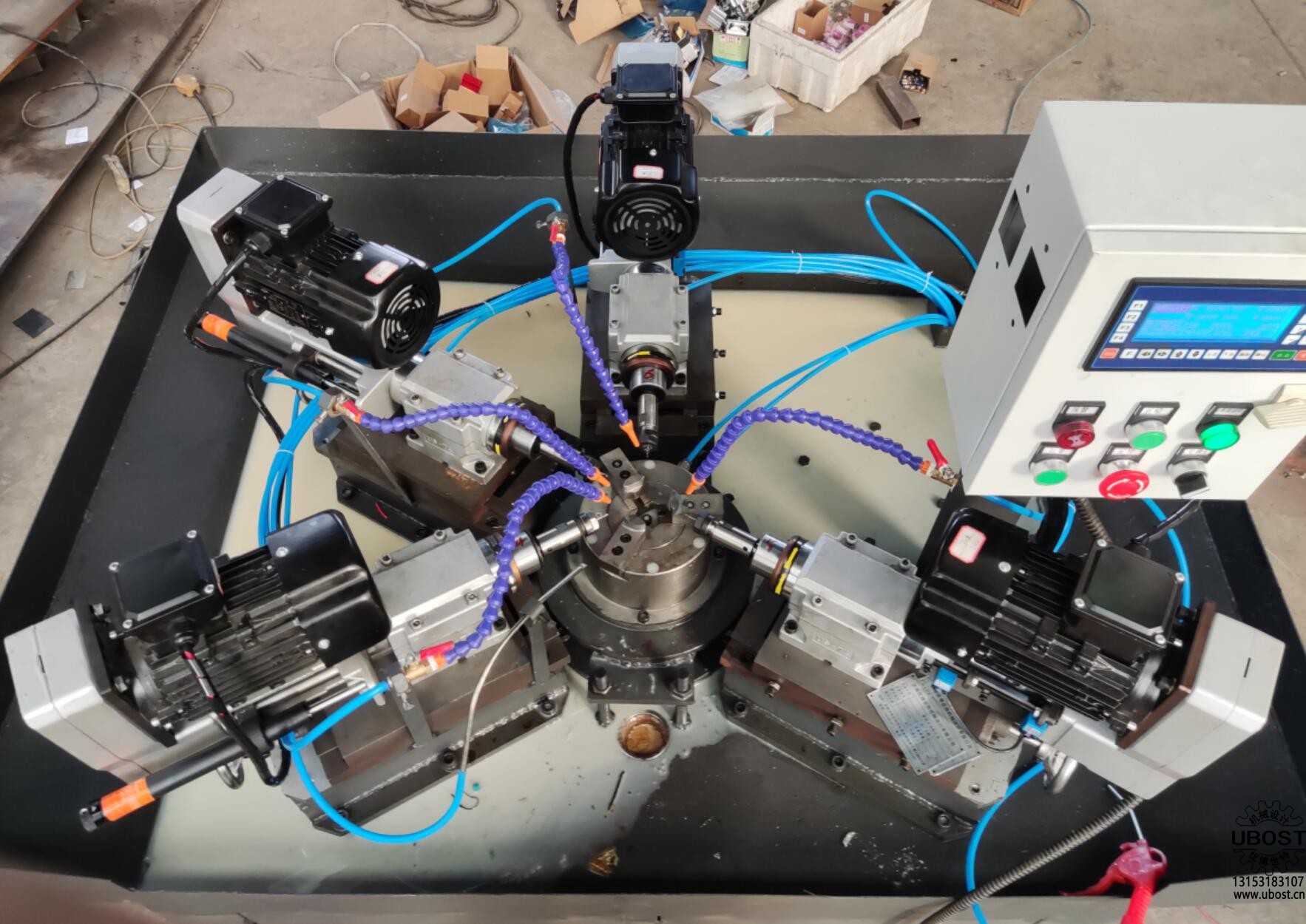 軸承圈-四軸鉆孔機(jī)(型號(hào):UBOST.CN-UZZC4Q-4)濟(jì)南優(yōu)博世特機(jī)械設(shè)計(jì)(UBOST.CN)有限公司位于濟(jì)南市章丘區(qū),公司簡(jiǎn)稱“優(yōu)博世特”,英文“UBOST”。成立于2010年1月10日,至今15年。在機(jī)械行業(yè)中,擁有獨(dú)立的設(shè)計(jì)研發(fā)及制造能力。優(yōu)博世特(UBOST)專業(yè)設(shè)計(jì)定制各種非標(biāo)自動(dòng)化設(shè)備,包括如下:1、 銷軸類全自動(dòng)鉆孔倒角攻絲機(jī)包括:銷軸全自動(dòng)鉆孔倒角攻絲機(jī)